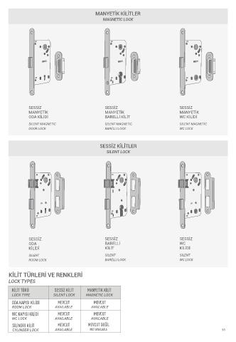 KİLİT TÜRLERİ VE RENKLERİ